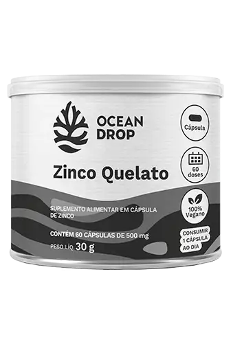 O Zinco Quelato da Ocean Drop é formulado com Bisglicinato de Zinco, uma forma mineral de alta biodisponibilidade que garante absorção até 40% superior comparada ao zinco comum. Diferente dos suplementos convencionais, nossa fórmula não causa desconforto gástrico e é aproveitada ao máximo pelo organismo. Essencial para blindar o sistema imunológico, este suplemento atua diretamente na síntese de colágeno, promovendo a saúde do cabelo, pele e unhas, além de ser um potente antioxidante contra radicais livres.